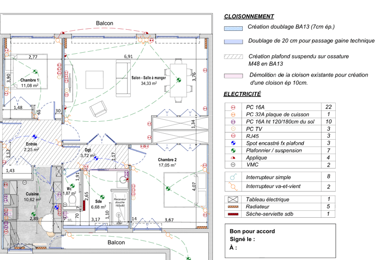 J’interviens en appui sur la phase de conception, en fournissant des documents précis et prêts à l’usage pour faciliter la réalisation et le suivi de vos projets par les professionnels que vous avez choisis.